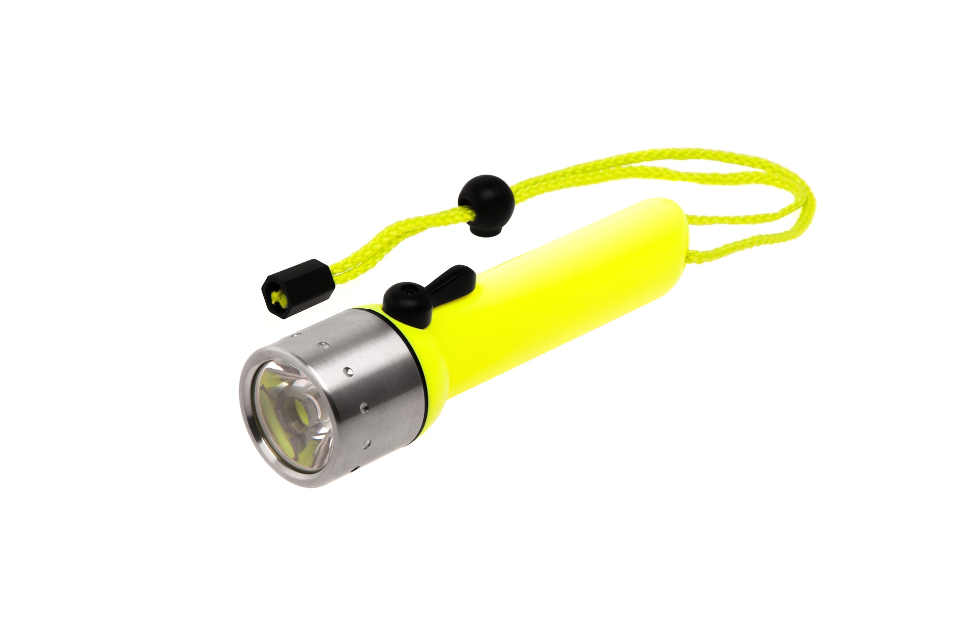 Robust og kompakt dykkerlygte i neongul – perfekt til undervandsoplevelser.